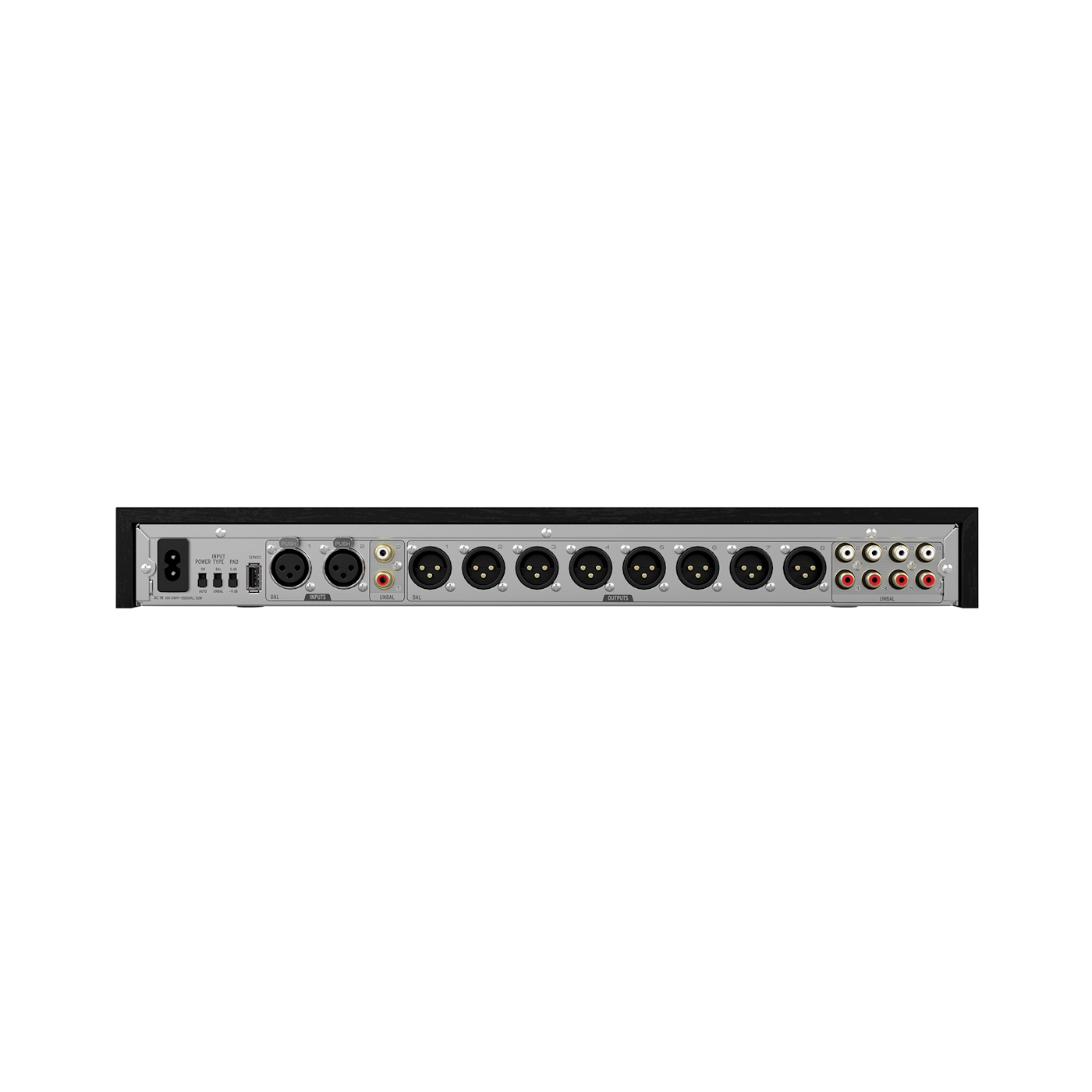 | Salidas | 8x XLR balanceados, 8x RCA no balanceados |