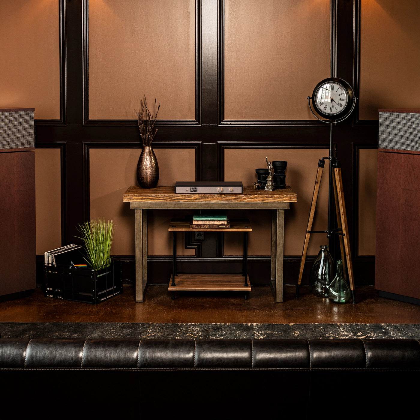 | Material de caja | MDF enchapado, madera contrachapada de 1/2”, placa frontal de acero |