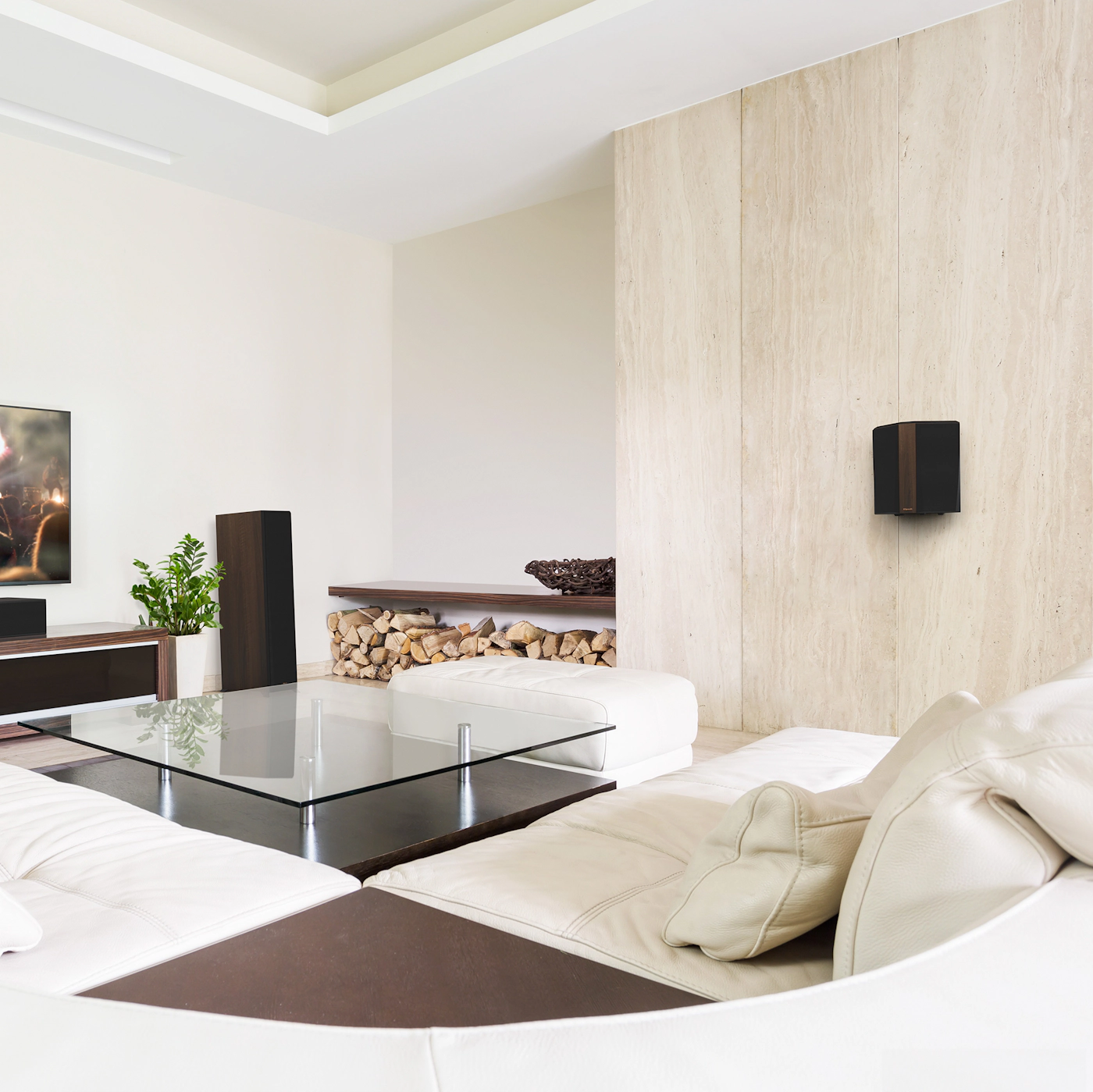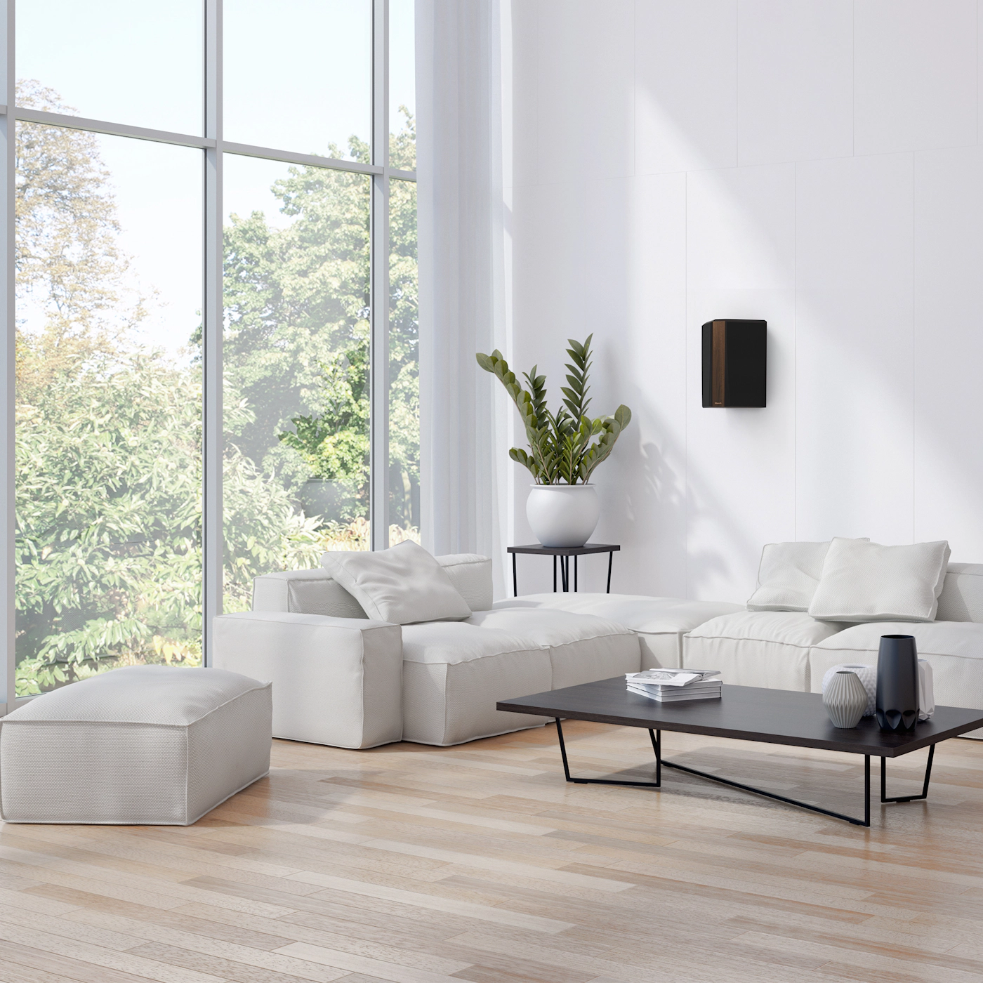 Estas bocinas no solo suenan increíble, sino que lucen espectaculares. Su gabinete cuenta con acabados de grado de mueble en opciones de Ébano y Nogal, con bafles pintados resistentes a rayaduras. Además, las rejillas magnéticas permiten un cambio estético rápido entre un look moderno y uno elegante y discreto.