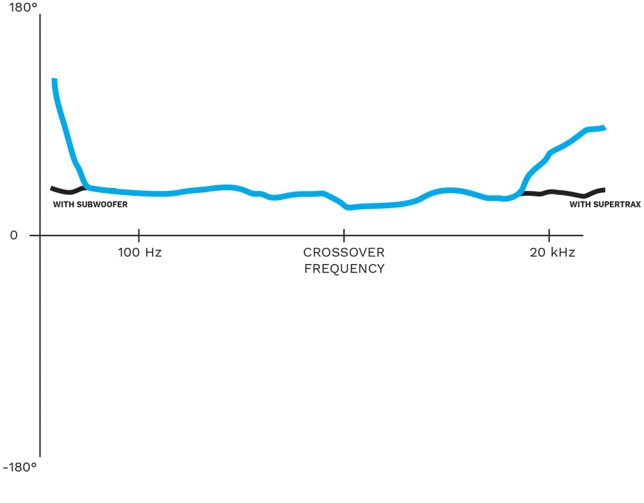 Asimismo, añadir un supertweeter, alineado temporalmente con el centro acústico del IsoFlare, reducirá el error de fase en altas frecuencias al desplazar el punto de corte del paso bajo mucho más arriba. Por lo tanto, incluso ignorando por ahora la percepción del sonido por encima de 20 kHz, añadir un supertweeter preservará mejor la relación armónica entre los instrumentos y es evidente hasta en las bajas frecuencias. Este es un hecho muy importante que no resulta intuitivo.